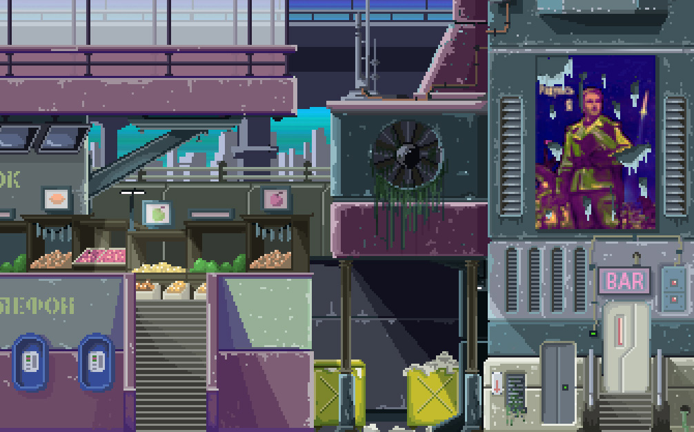 Depicted in a distinctive pixel art style the cyberpunk city crackles with tech-noir intrigue and neo-digital deceptions. Using every tool at your disposal help Eugene to unpick the knot of mystery that he has become enmeshed within – your equilibrium will be rocked as you point and click a path through this briar patch of tangled meaning and unexpected quixotic quirks.