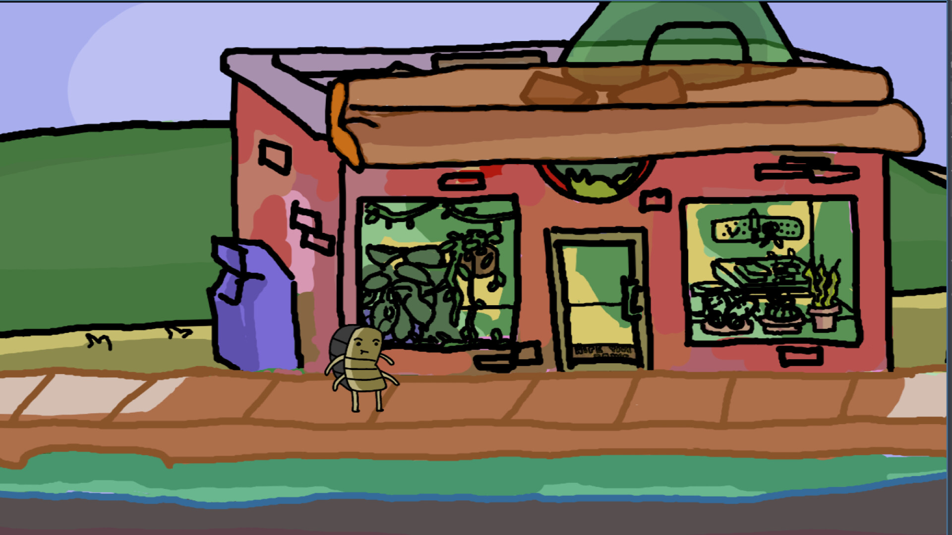 STORY: You are a Roly Poly who works at a coffee shop. you are saving money so that you can expand your business to space. Why? 1. Because capitalism 2. Shut up GAME MECHANICS: - buy upgrades like lavender syrup - make coffee in point and click adventure - Dialogue affects how high your tips are