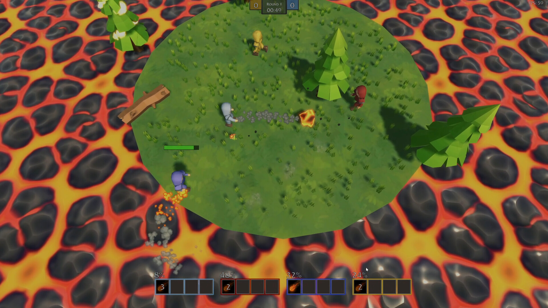A chaotic local multiplayer brawler. Up to 4 lads duke it out on a small island surrounded by lava that relentlessly closes in. Draft new spells and items every round, adapt to the chaos, and knock your rivals into the flames to claim victory.
