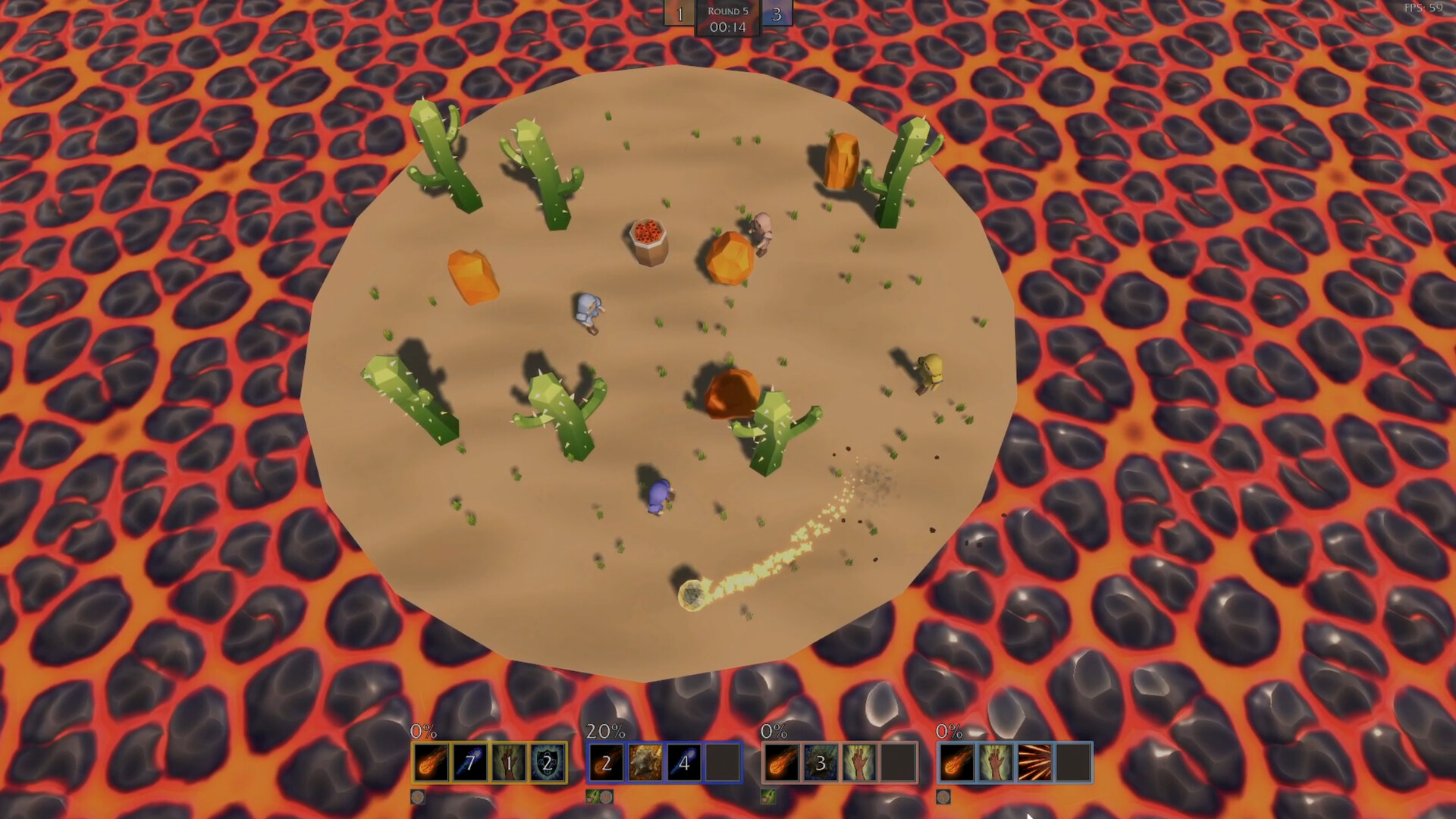 A chaotic local multiplayer brawler. Up to 4 lads duke it out on a small island surrounded by lava that relentlessly closes in. Draft new spells and items every round, adapt to the chaos, and knock your rivals into the flames to claim victory.