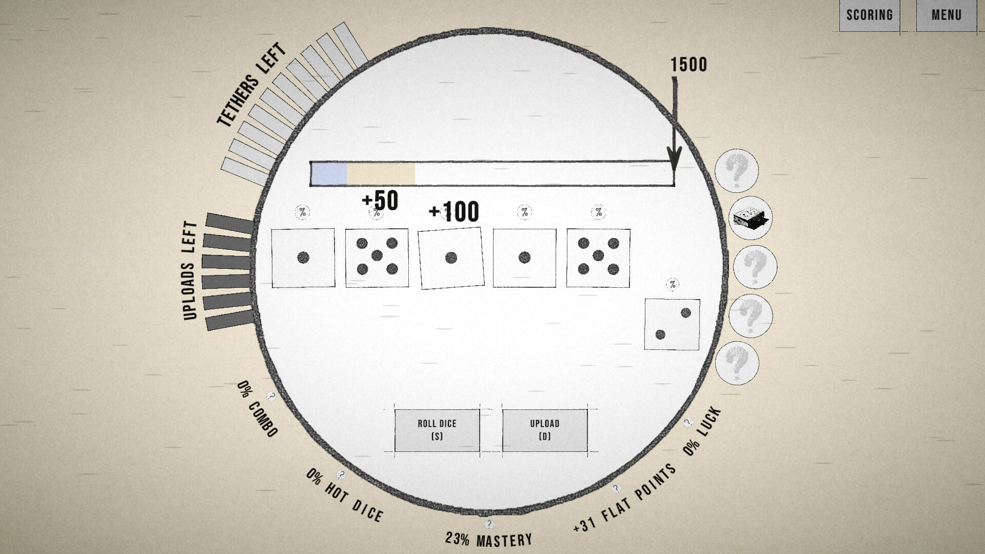 Roll six dice to rack up points, but beware - push your luck too far without a scoring roll, and you'll "Farkle," losing everything you haven't stashed away. Manage limited resources like Tethers and Uploads to bank your scores and survive.