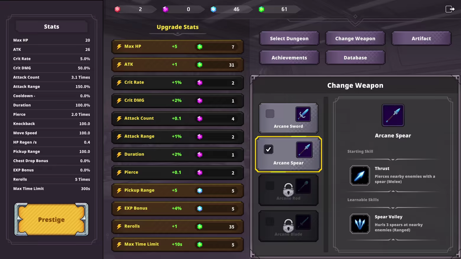 A 2D top-down roguelite blending incremental progression and treasure hunting—defeat enemies to level up, loot powerful items from chests, permanently upgrade your stats with gathered materials, collect ultra-rare Artifacts, and Prestige to push your power to limitless heights.