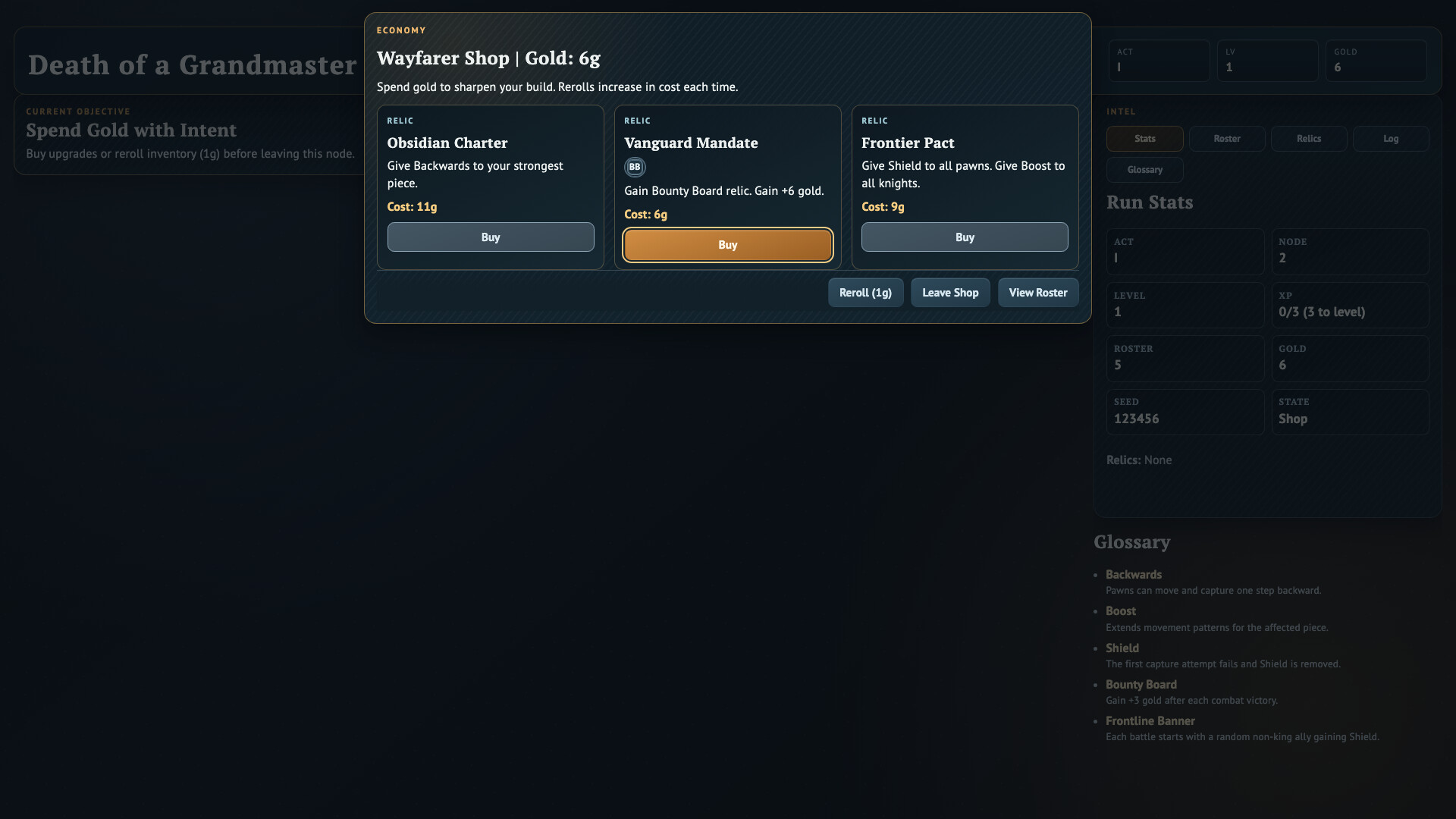 A tactical chess roguelike where you build a custom board, survive escalating combats, and break enemy kings with powerful relic and piece synergies.