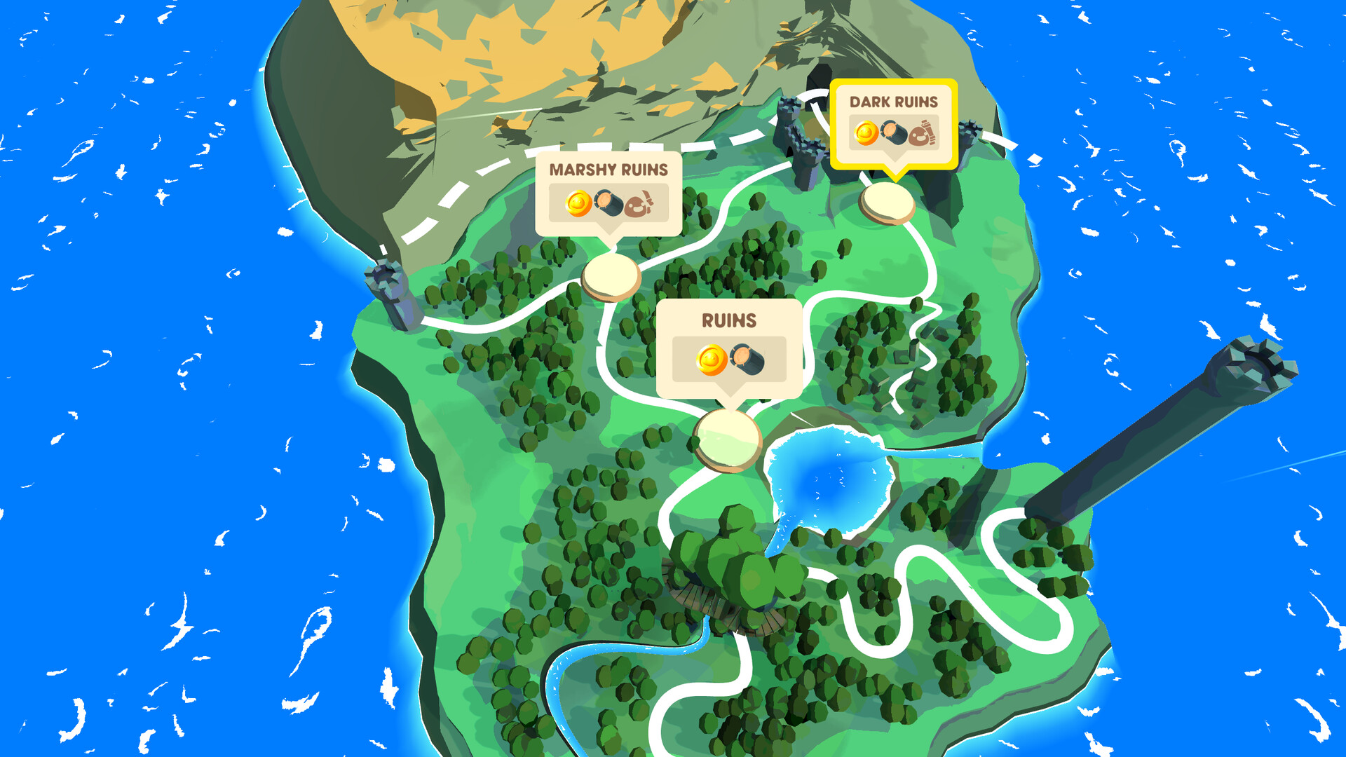 • Rogue-lite structure with node-based maps