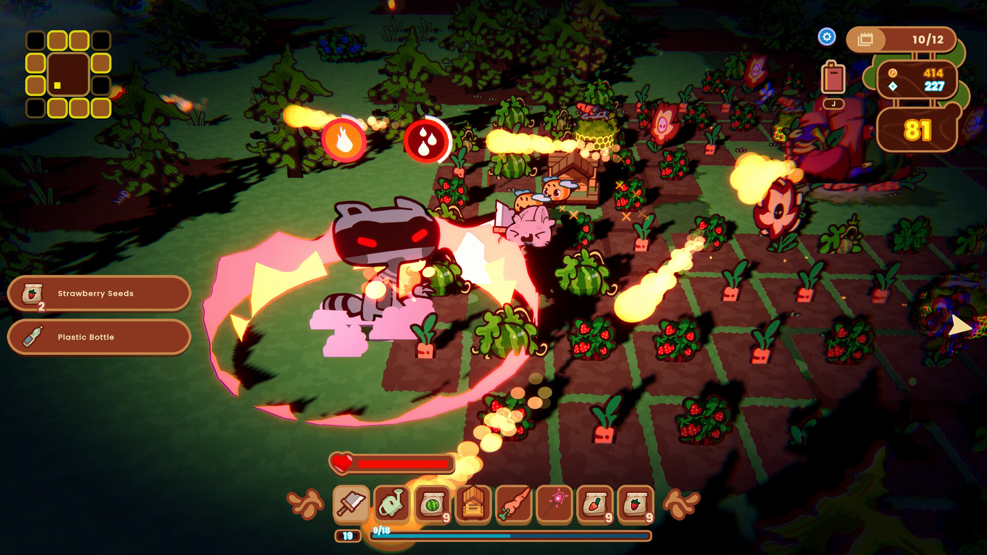 Raccoons swarm Sprout’s farm, each with their own set of tricks and behaviors, all trying to steal away your hard-earned crops! As the days go on, waves grow tougher, enemies get smarter, and your garden will need all the help it can get. Upgrade your towers, explore for stronger weapons, and fight hard to make it through until morning.