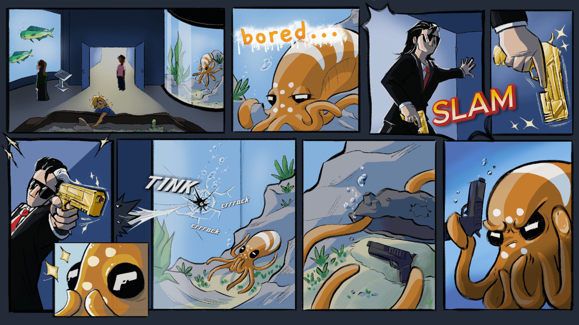Glocktopus — Escape the aquarium. Seize the Golden Gun.