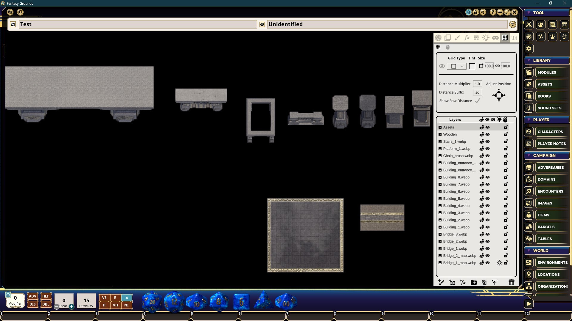 The FG Dwarven Realms Map Pack features images and art produced by our in-house artist, Joshua Watmough. They have been organized and optimized for use with Fantasy Grounds VTT and the image tools. This art pack includes images for creating underground and deep locations, with an emphasis on dwarven structures. This pack consists of different buildings, platforms, and catwalks, as well as images for huge chains and so on, to be collaged together to create custom and interesting locations. This pack includes the following items: