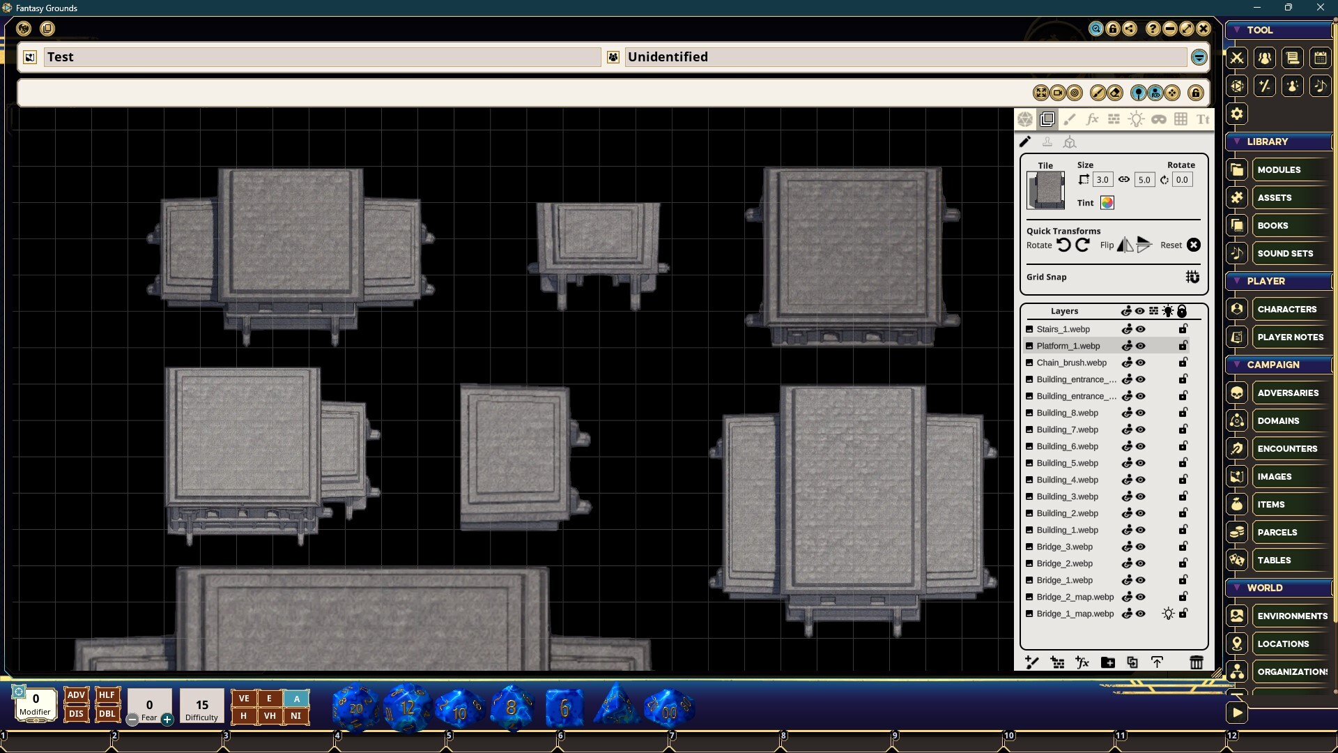 The FG Dwarven Realms Map Pack features images and art produced by our in-house artist, Joshua Watmough. They have been organized and optimized for use with Fantasy Grounds VTT and the image tools. This art pack includes images for creating underground and deep locations, with an emphasis on dwarven structures. This pack consists of different buildings, platforms, and catwalks, as well as images for huge chains and so on, to be collaged together to create custom and interesting locations. This pack includes the following items: