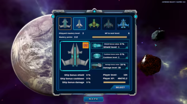 The concept of the game is to farm experience, so you can unlock new upgrades. You can collect mastery points from other bounty hunter ships to unlock new ships. If you find yourself unable to progress the game, you can always come back to earlier levels and farm experience, which you can use to make limitless upgrades for you ship. Each new level brings a quest with an unique one time ship upgrade, so use it wisely.