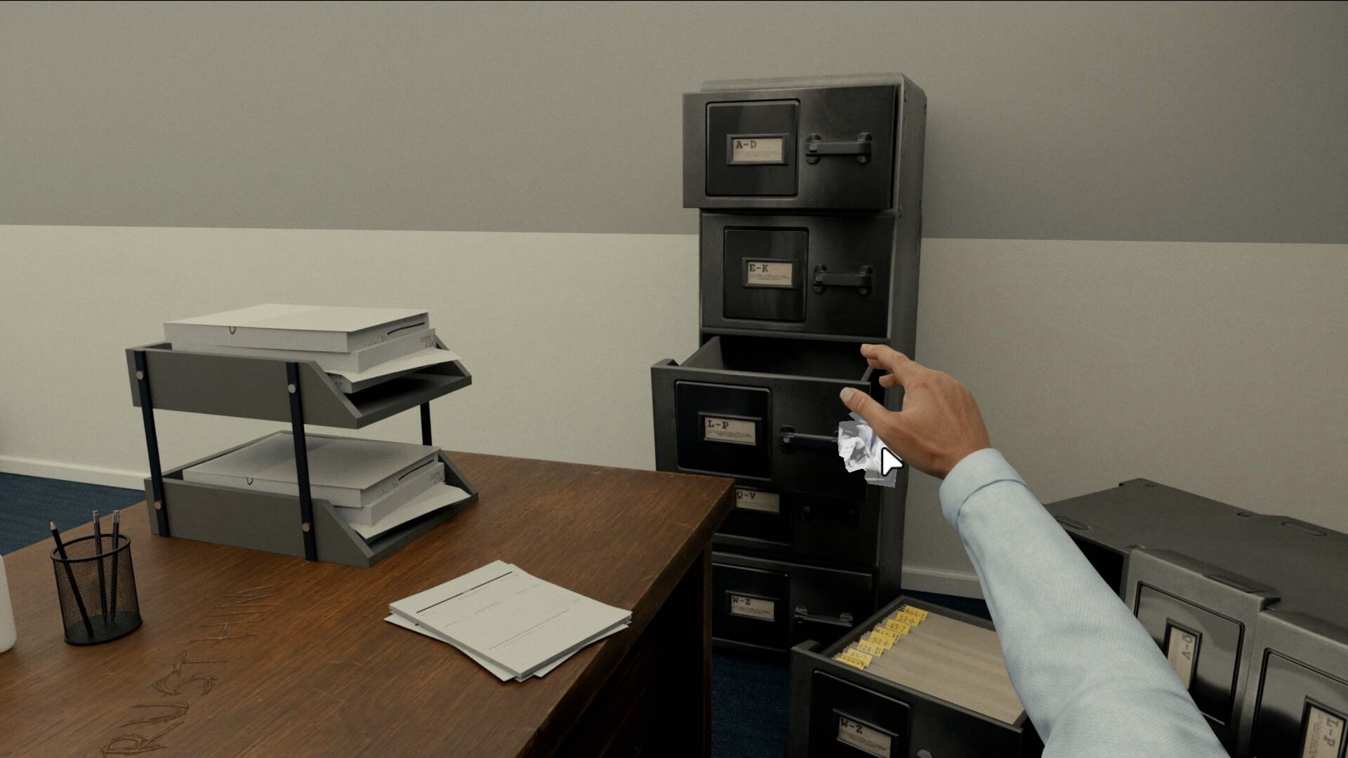 You wake up at your desk with a gun in front of you. A voice in your ear keeps pushing you to pick it up. To shoot.