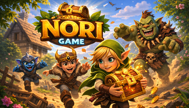 Nori Game is a competitive multiplayer game where players attempt to steal treasure chests from the opposing team's base and bring them back to their own base to win. Players can engage in magical combat by shooting blue energy orbs at opponents. Each player has five lives; when all lives are lost, the character respawns at their starting point.