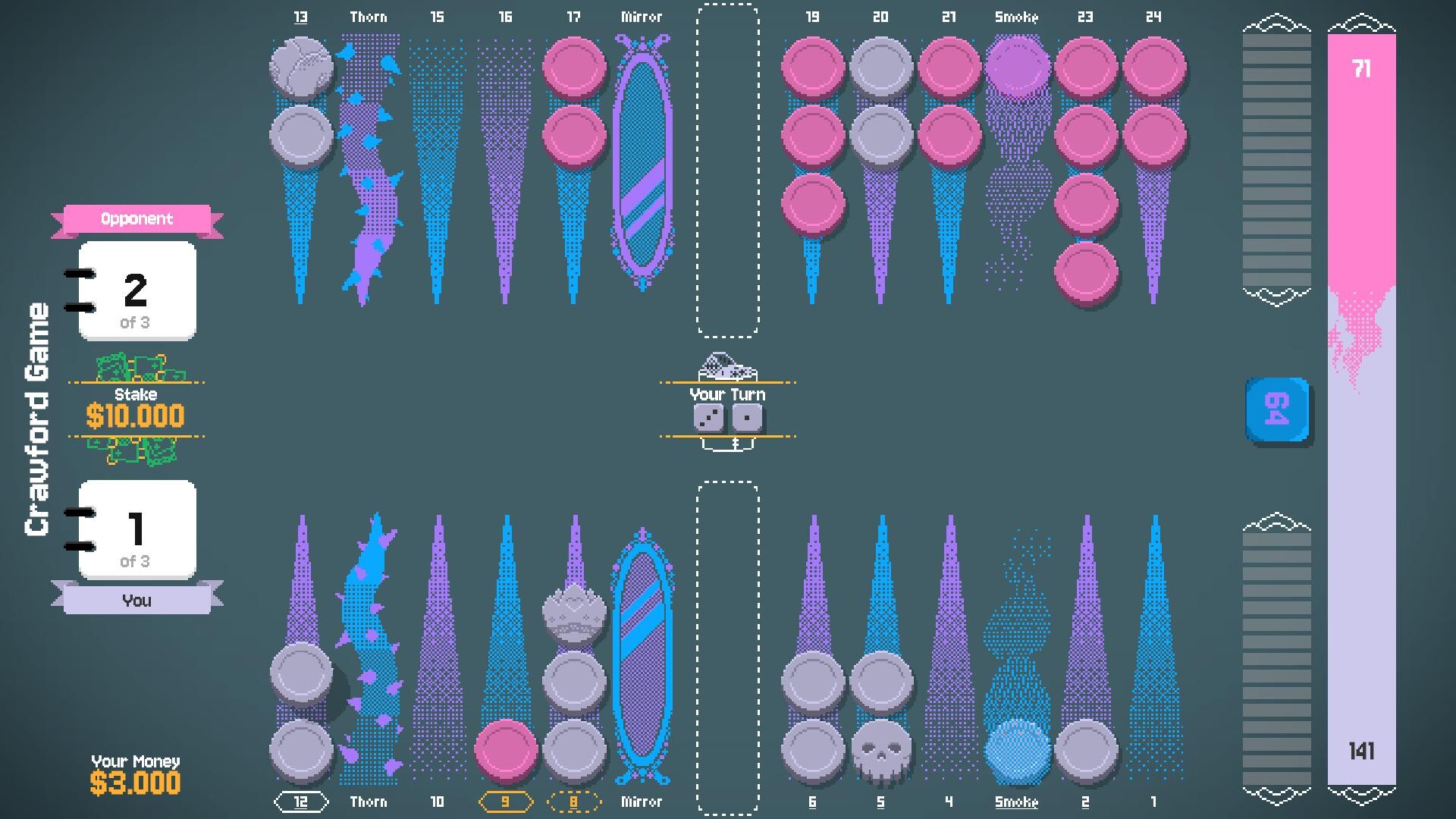 Backgammon, but the dice are enchanted, the boards are cursed - and every checker plays by its own rules. Outsmart the odds, exploit rule-bending mechanics, and climb to the top as you roll the dice in this high-stakes roguelite experience!
