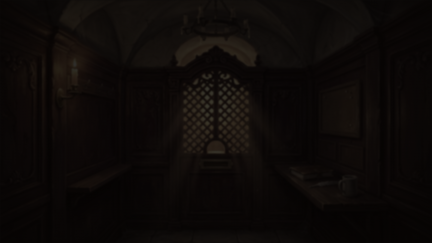 Step into the confessional as a newly assigned priest at St. Augustine's parish. Behind the ornate wooden screen,