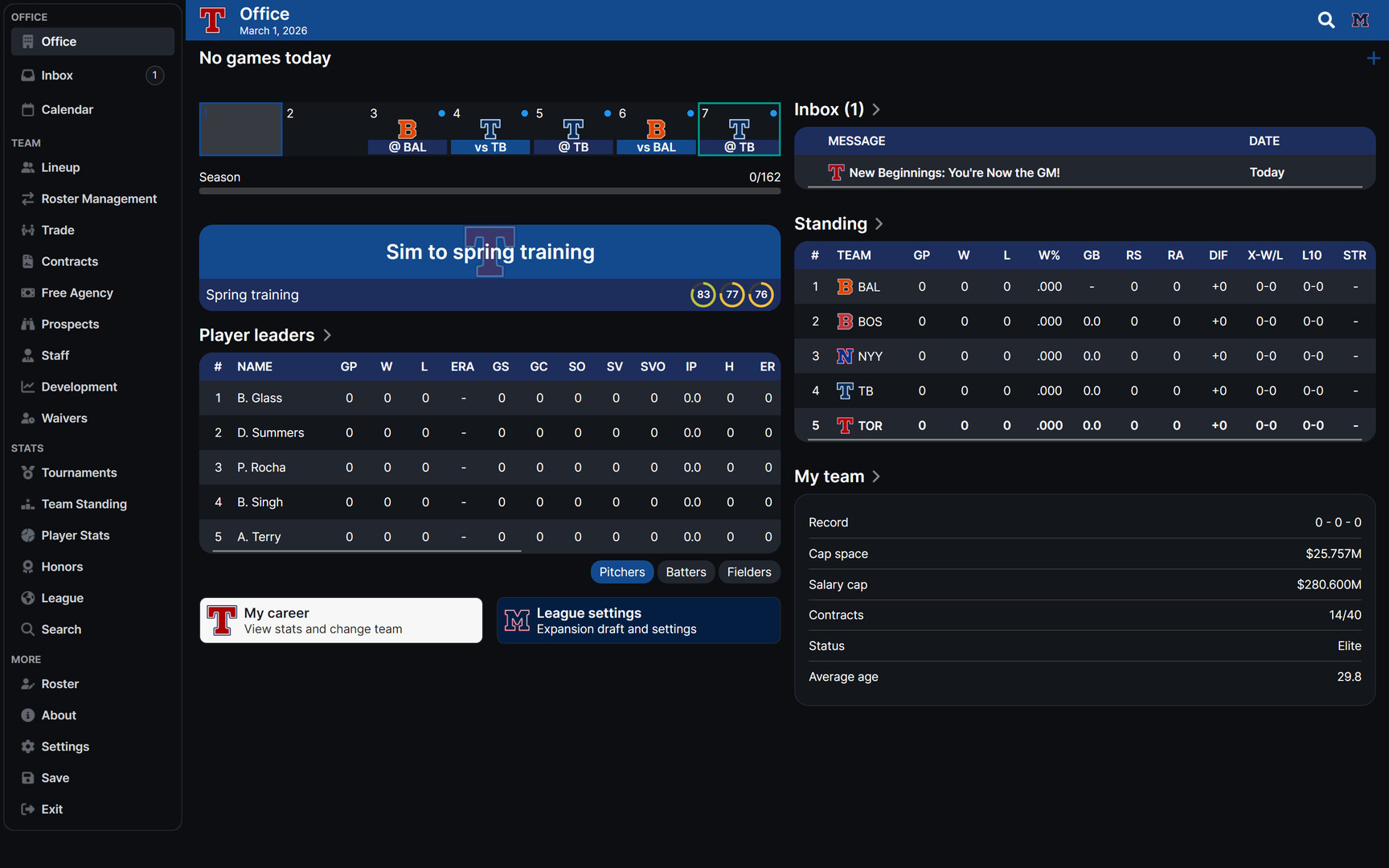 Career Mode: Start as a rookie GM and build your reputation over time. Change teams, chase challenges, and leave your mark on baseball history.
