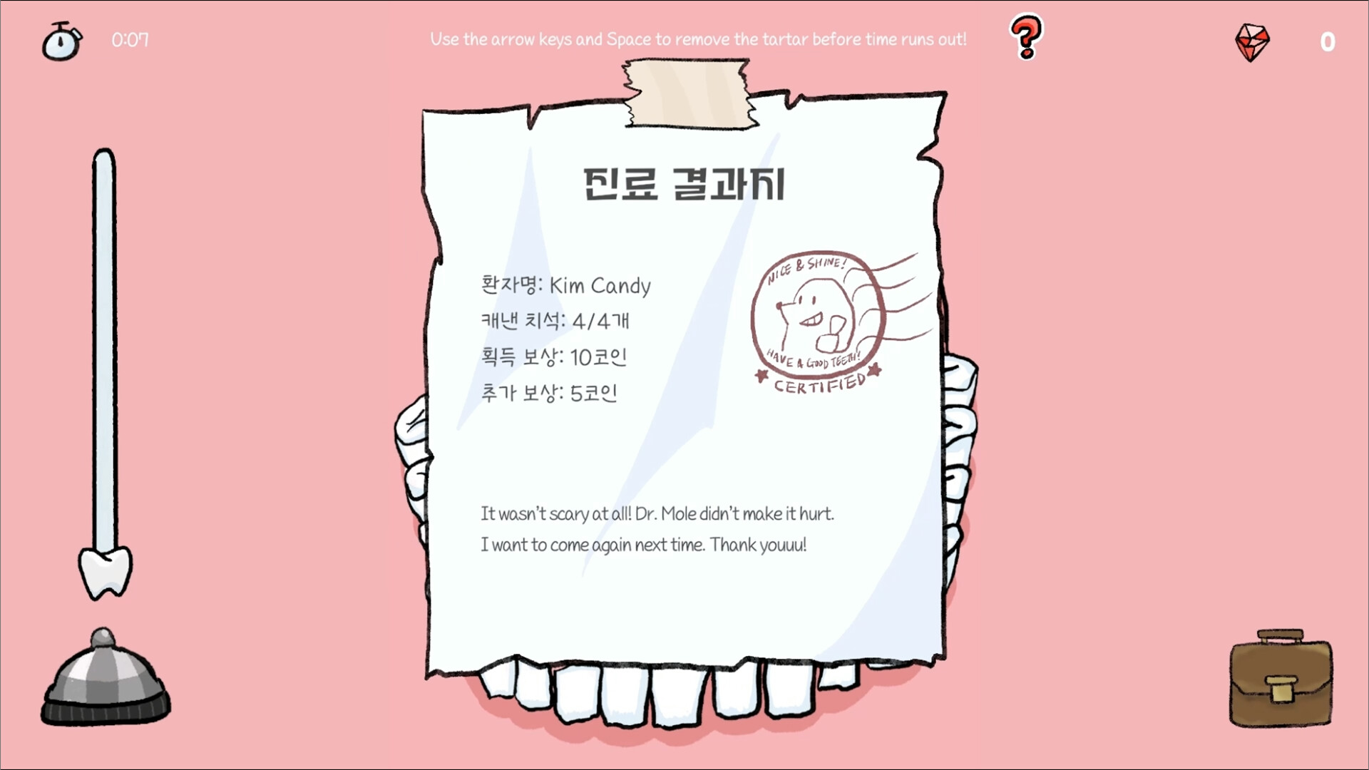• Earn money to replace your worn-out pickaxe and coat, and upgrade your windowless semi-basement dental office!