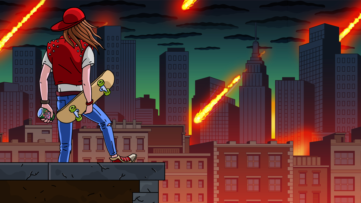 Skate. Fight. Fight with a skate. Everything we love about platformers in one game.Leave Me Alone is a game about guiding a fierce skater through geeky ’90s style locations. Fight monsters and mutants while performing mad skateboarding tricks.
