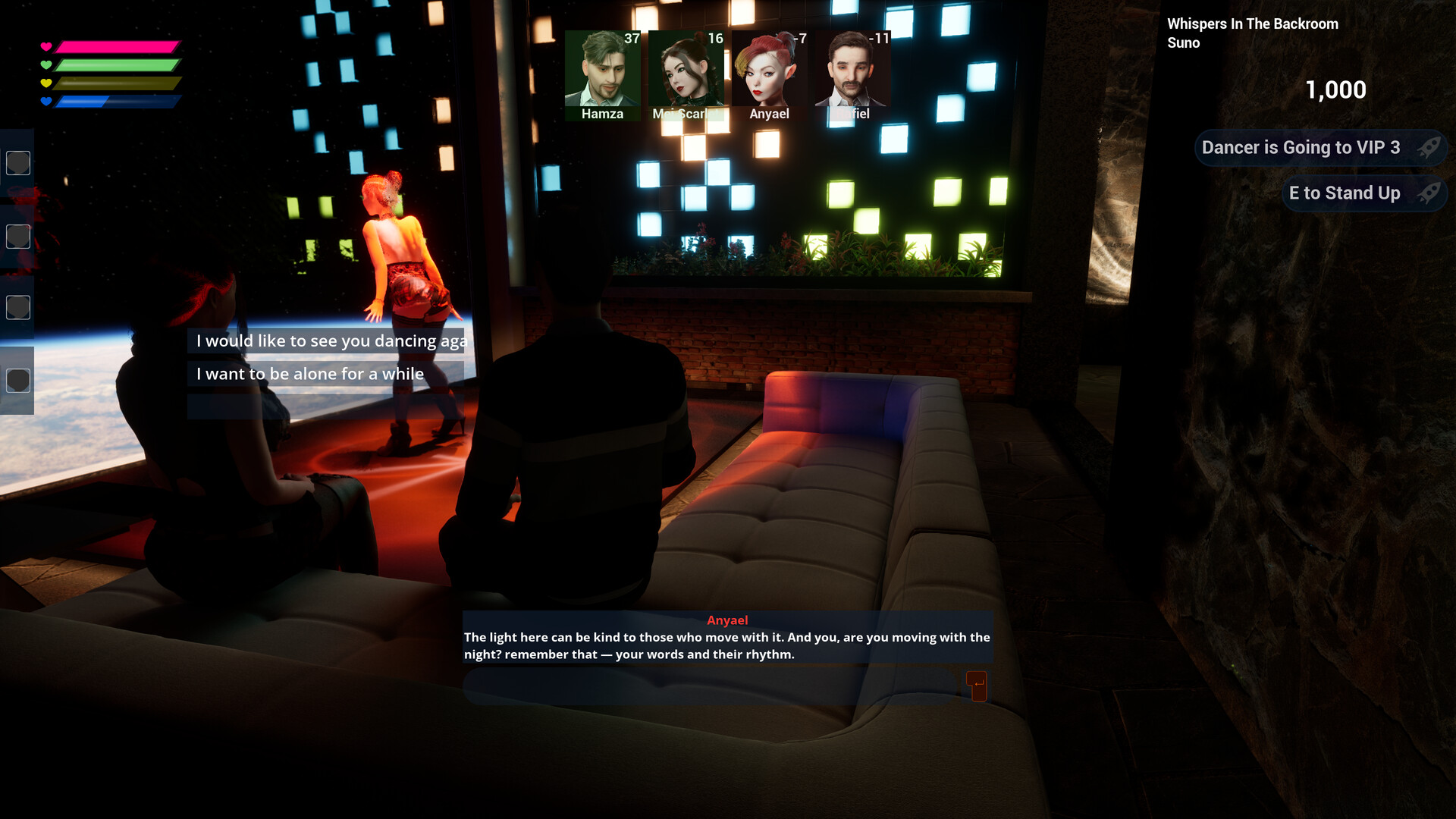 Because the interactions between human players and AI characters are so limitless, it is impossible to perfect the balance alone. I chose Early Access because I need to see how real players converse, build relationships, and test the boundaries of the system. Community feedback will directly shape the development of new gossip mechanics, Whisper Mode secrets, and overall club dynamics. This game is a living experiment, and I want to build, refine, and evolve it step by step together with the community”