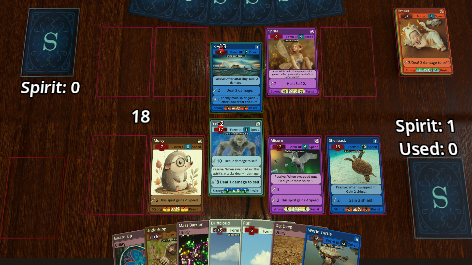 Put your deck-building skills to the test, and build a deck consisting of 5 unique spirit lines. Balance speed with damage, and try to have a good coverage of the 9 different elemental types. Then put it to the test against other players in a TCG that rewards thinking ahead. Lock in moves at the same time as your opponent, constantly attempting to outplay them, as you watch your actions play out in speed order.