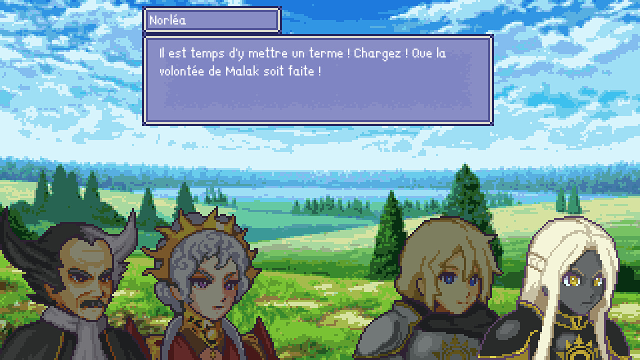 Un magnifique monde de fantasy prend vie à travers des sprites et de la musique nostalgique ! Profitez de terribles combats grâce à de magnifiques animations et de la musique créée avec les outils de l’époque pour une expérience rétro complète.