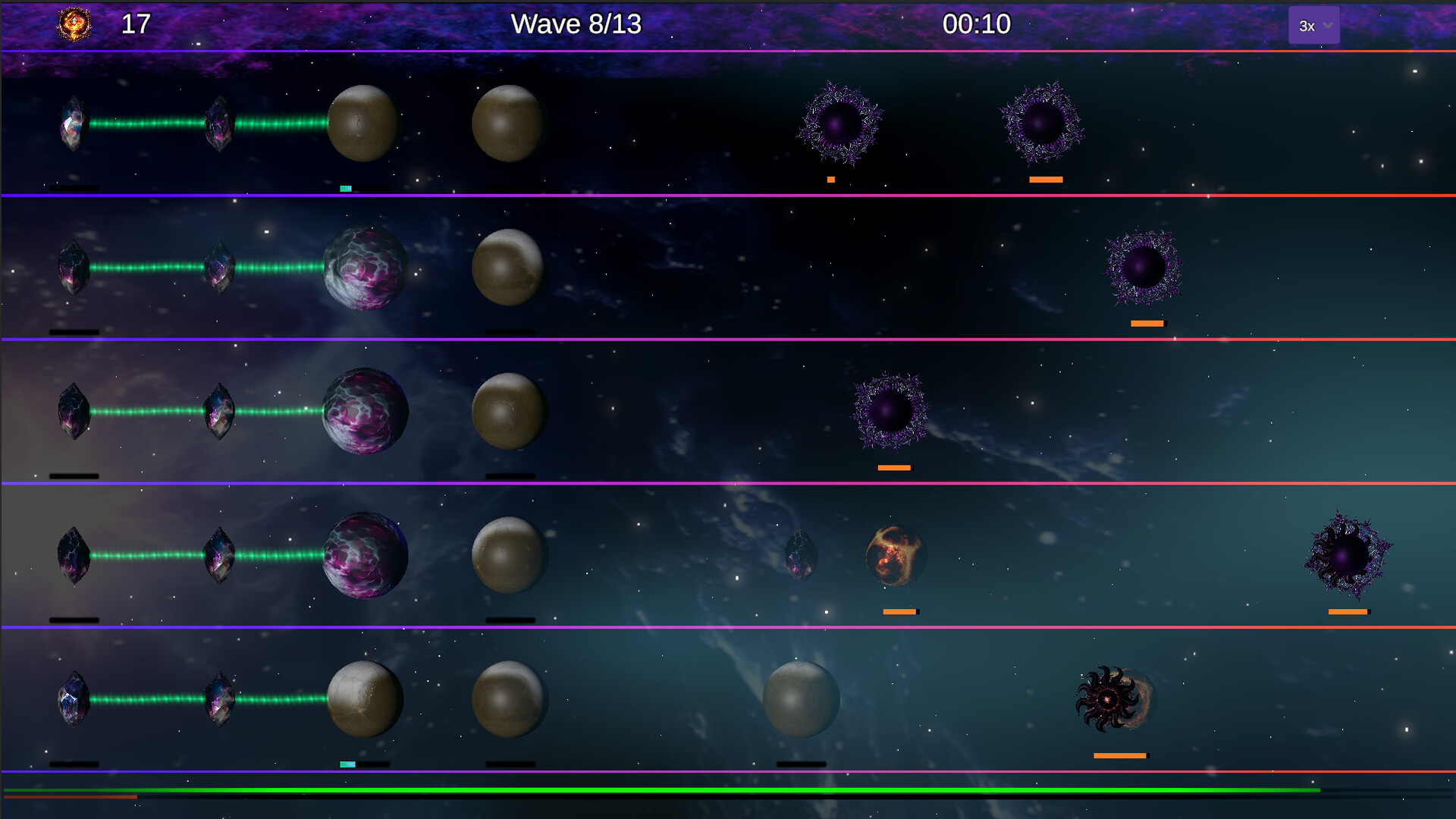 Command evolving planets across structured combat lanes where positioning determines survival.