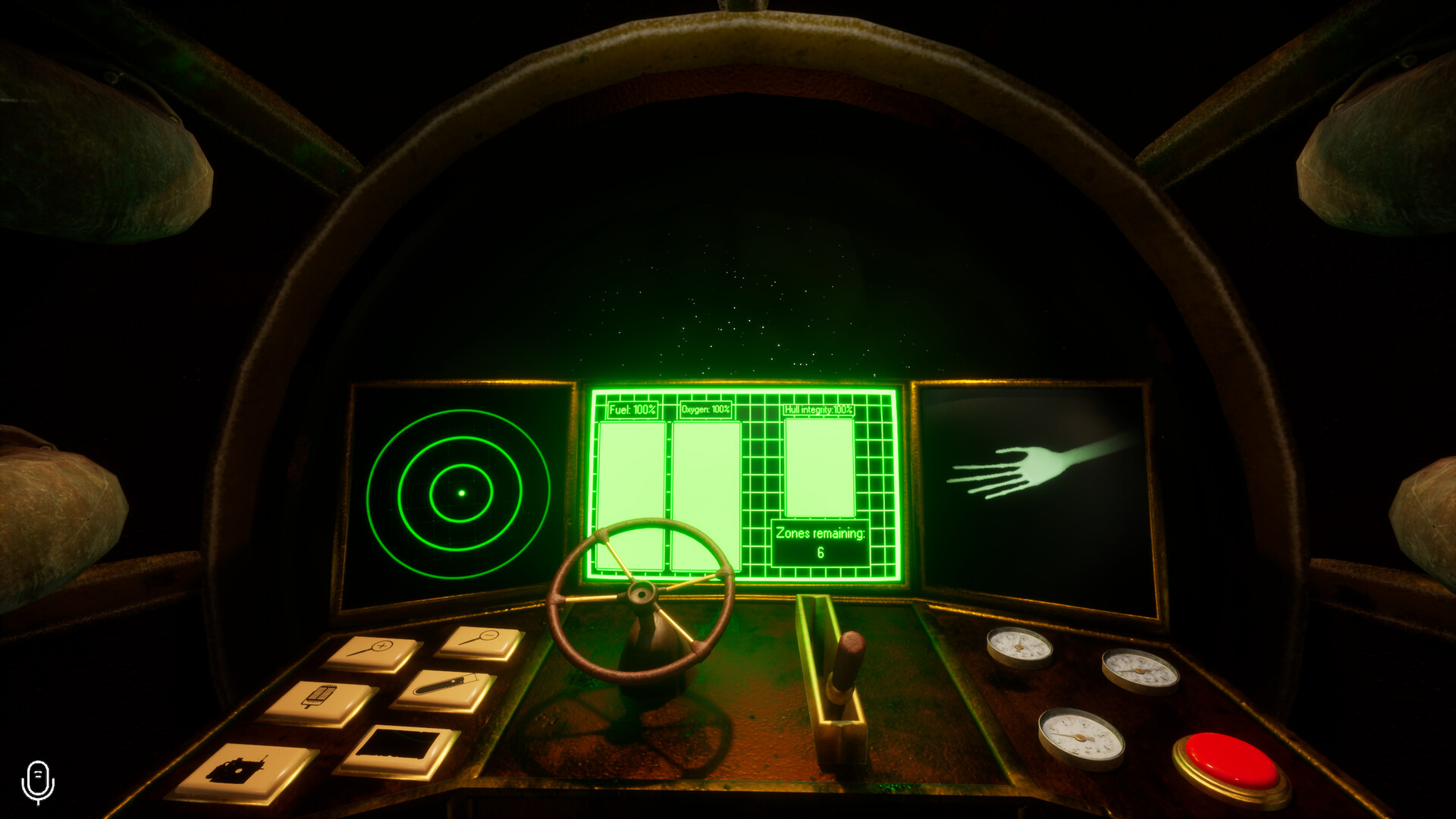 Take control of your rusty research vessel using the navigation console and map. Adjust your speed with the lever and steer using the wheel. Every movement counts — and every sound could be your last.