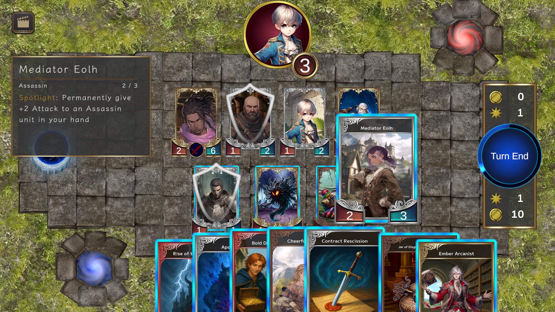 Earn coins during the game to buy and sell cards, building and adapting your deck as the battle unfolds. Flexible deck management is key to victory.