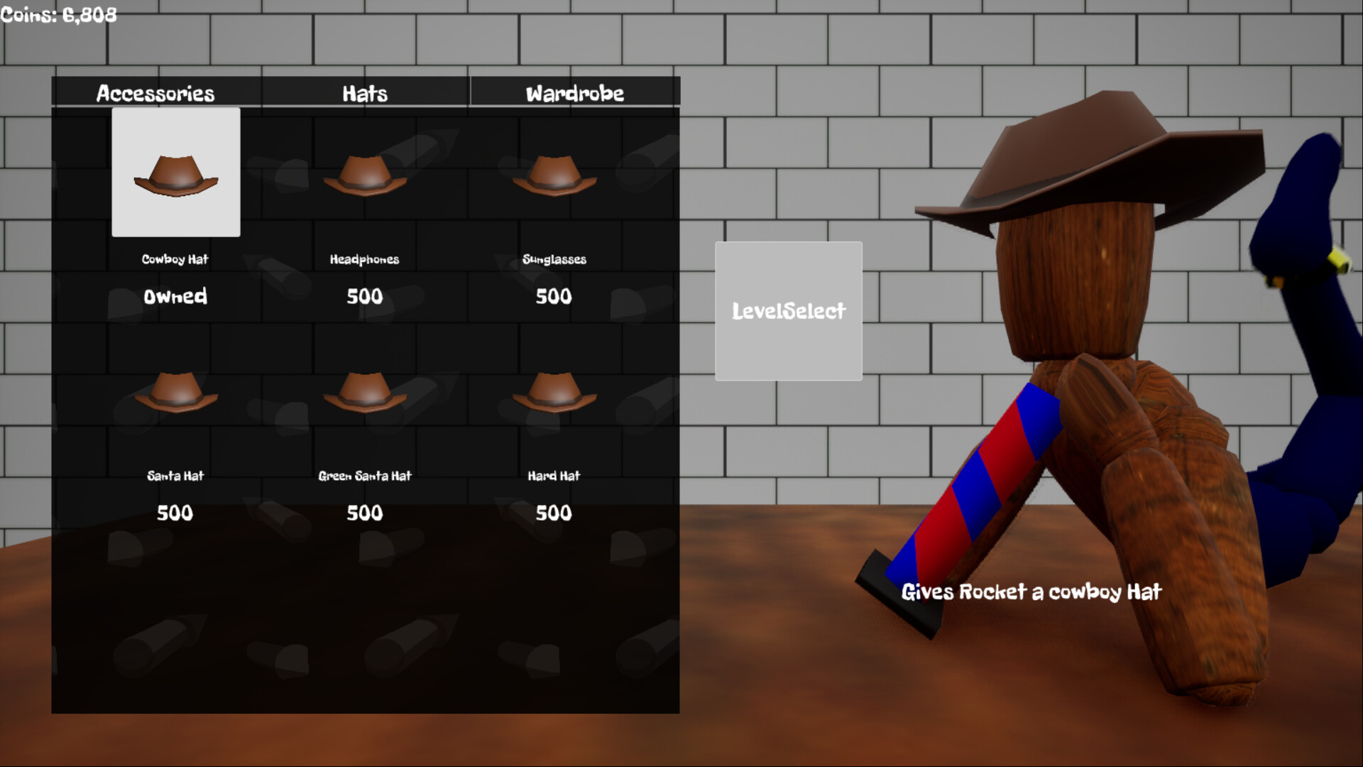 Coins are scattered across the lands. enemies and destructible objects will also drop coins. The more health the enemy has, and the more valuable the object, the more coins they will drop. You can use these coins in the shop to purchase accessories: 4 minor upgrades that can be applied at a time. Which 4 you may choose before entering a level. These usually have smaller effects that the armor, such as increasing your speed or decreasing the amount of ammo used when a weapon is fired. You can also buy hats, which have no effect on gameplay, but does look cool.