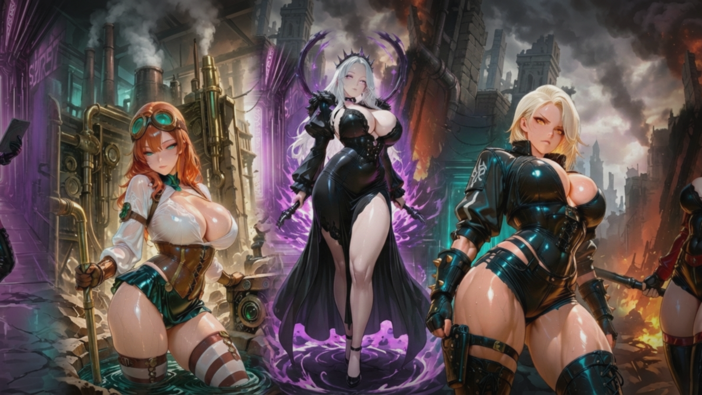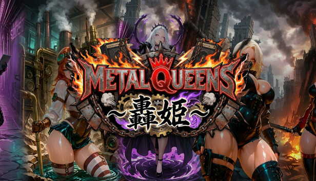 METAL QUEENS is a story-linked rhythm action game where you choose one of five metal queens and rise through narrative chapters and live stage battles. Set across five distinct worlds, including wasteland, cyberpunk neon city, gothic darkness, and steampunk industry, each route follows a different heroine’s conflict, rebellion, and awakening through music.