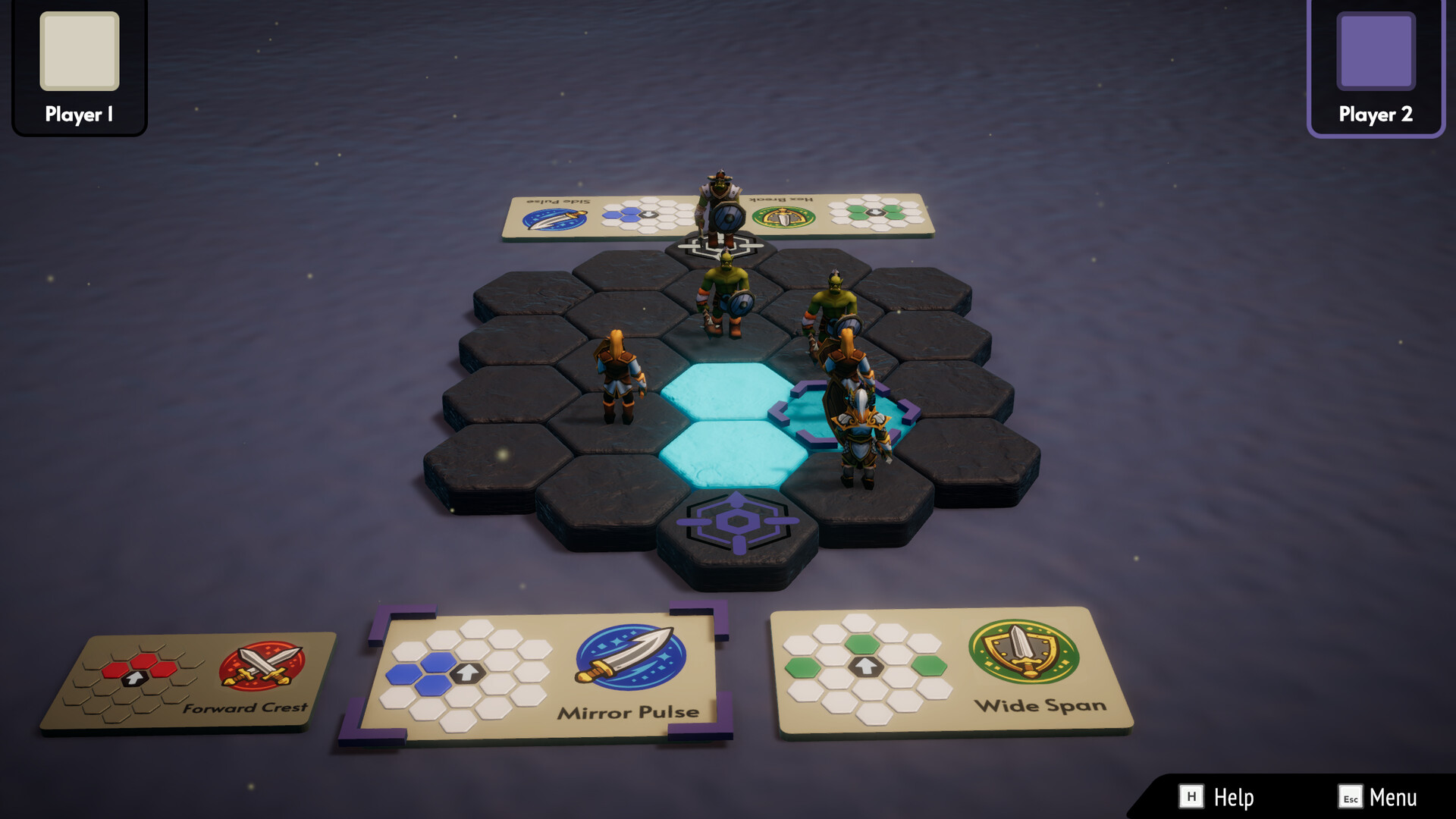 Two players face off on a board with a small set of units.