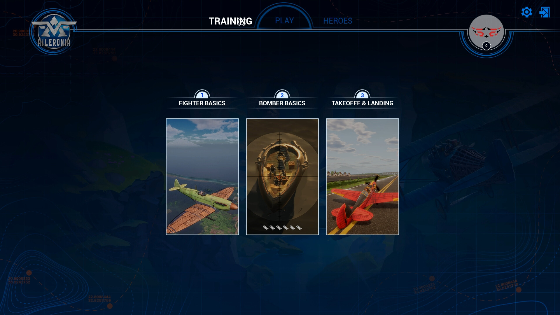 Training – the demo includes three basic tutorials: Basic Fighter Training, Bomber Training, and Takeoff & Landing Training. These are shortened versions designed to quickly introduce the gameplay.
