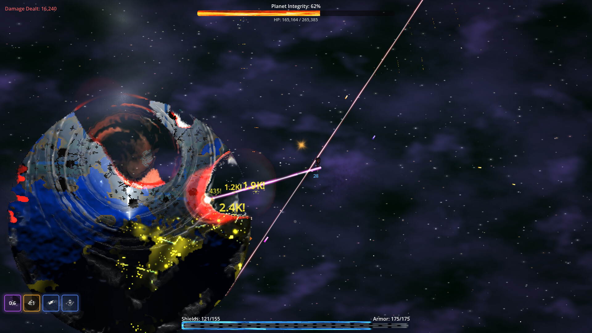 A physics-driven sci-fi destruction roguelite. Orbit hostile worlds, unleash devastating weapons, and carve real craters into fully simulated planets while escalating planetary defenses fight back.