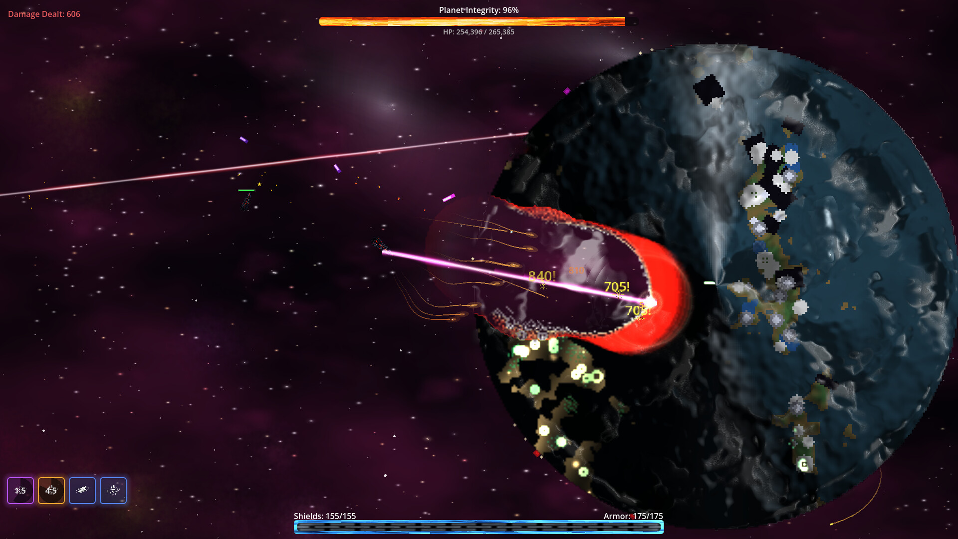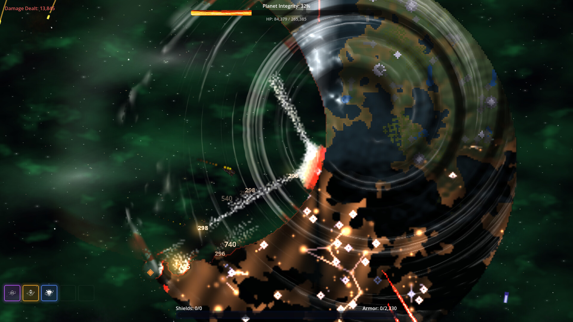 A physics-driven sci-fi destruction roguelite. Orbit hostile worlds, unleash devastating weapons, and carve real craters into fully simulated planets while escalating planetary defenses fight back.
