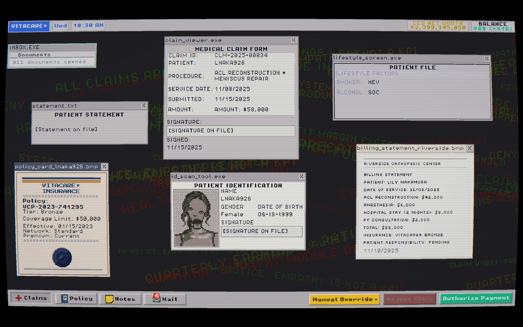 A dystopian bureaucracy simulator about denying health insurance claims