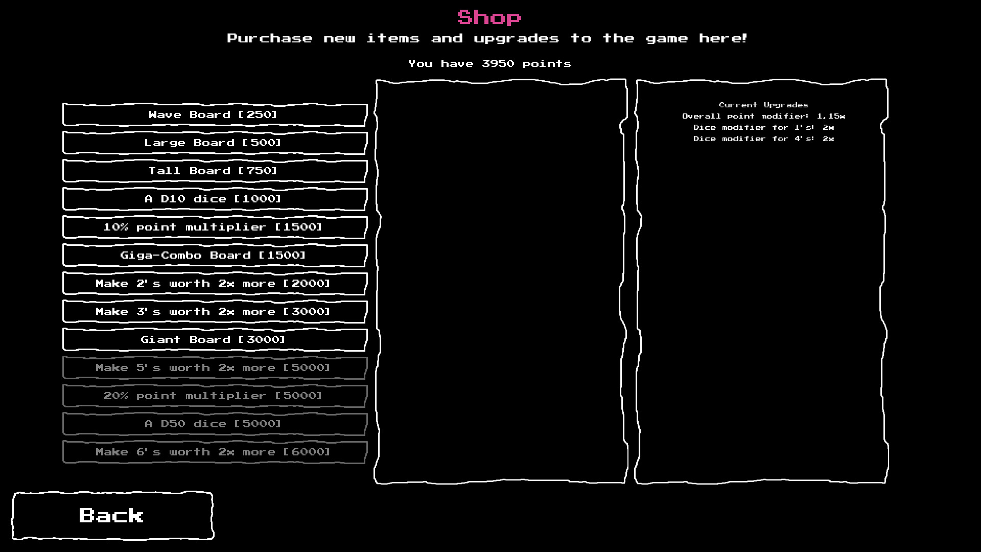 The game has a shop system, where the the more points you gain by winning against opponents, the better dice er larger boards you get get!