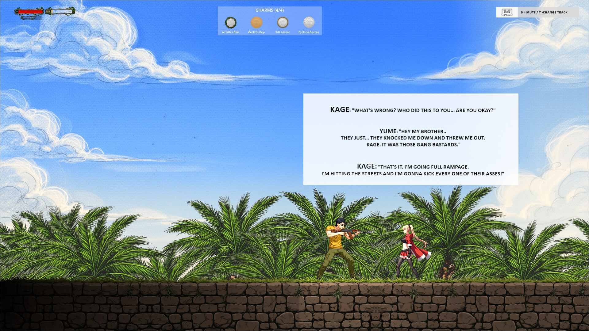 Rampage-Kage is a demanding 2D Metroidvania action-platformer set in a Tokyo underworld. As Kage, you must master punishing, precision combat to dismantle city gangs. Explore an interconnected urban labyrinth, collect powerful charms to customize your skills.