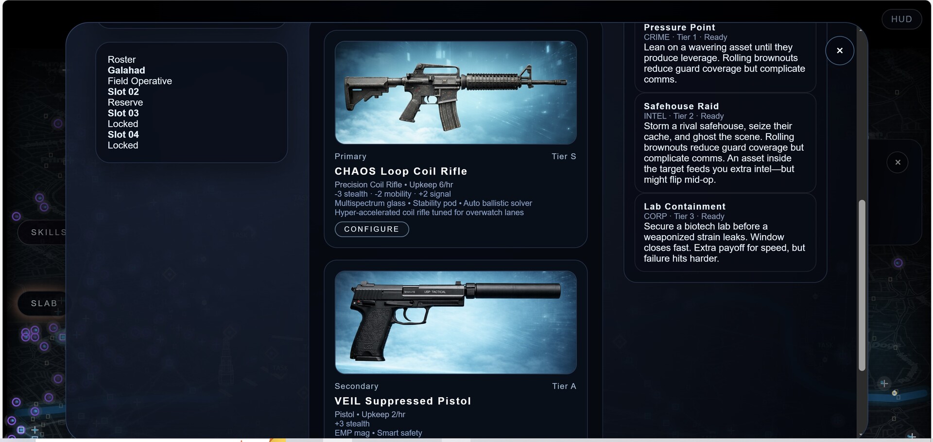 Rival operatives are not visible until you build enough intelligence on them. As you uncover more, they are revealed on the map and become actionable targets.