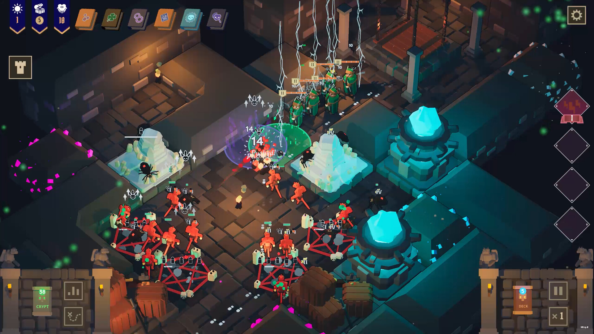 Upgrade your minions with useful perks. Create synergies to defend your gold. With a multitude of minions, events, ancient tomes and buildings, each run provides a new challenge with new strategies to explore!