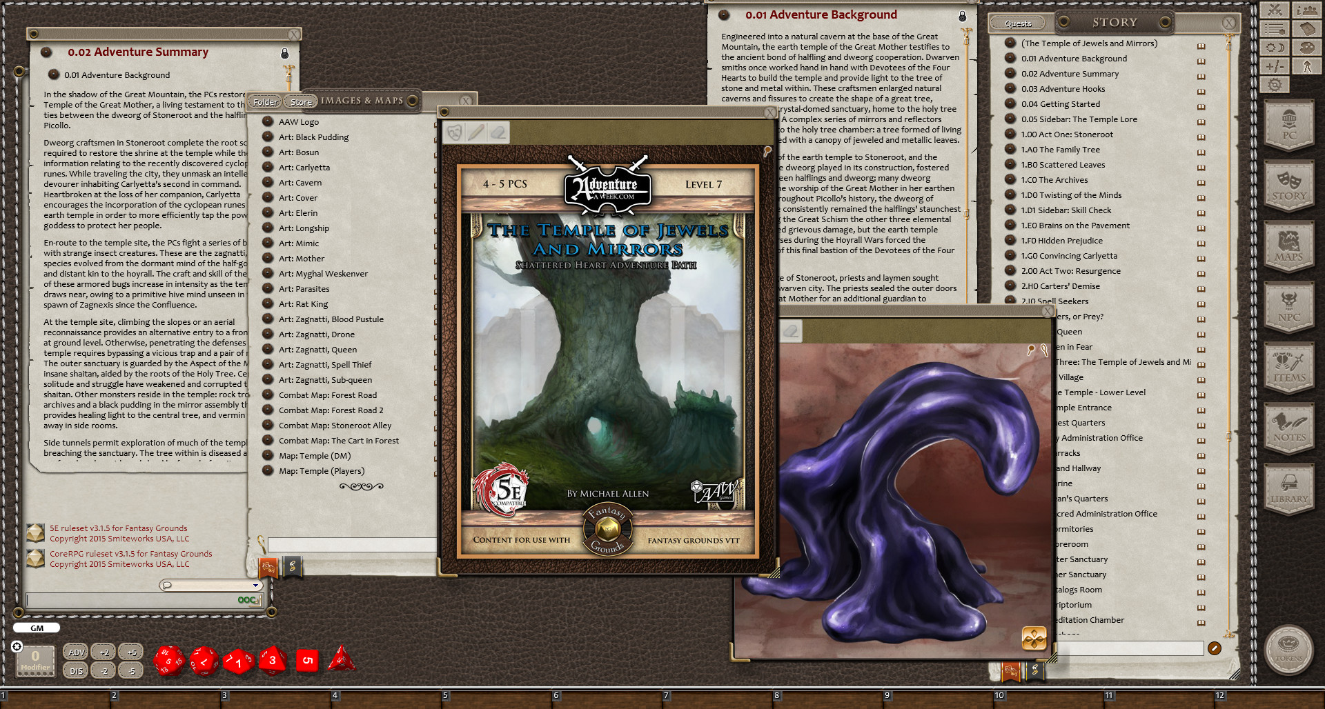 Requires: The free Fantasy Grounds virtual tabletop (VTT) software and the included 5E ruleset.