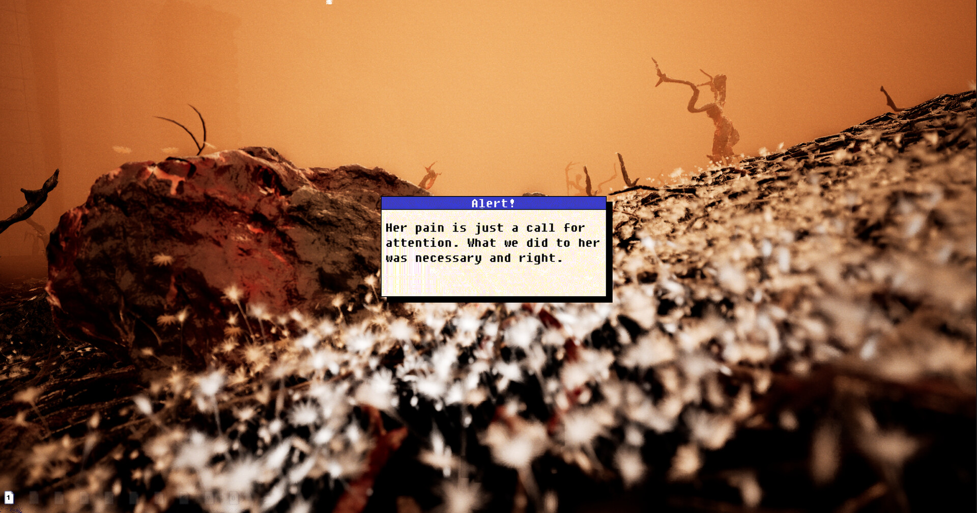"she danced in the wind like a holographic dream before the world died" is a short game poem and interactive fiction about The End, in which you play the last flower left on Earth.