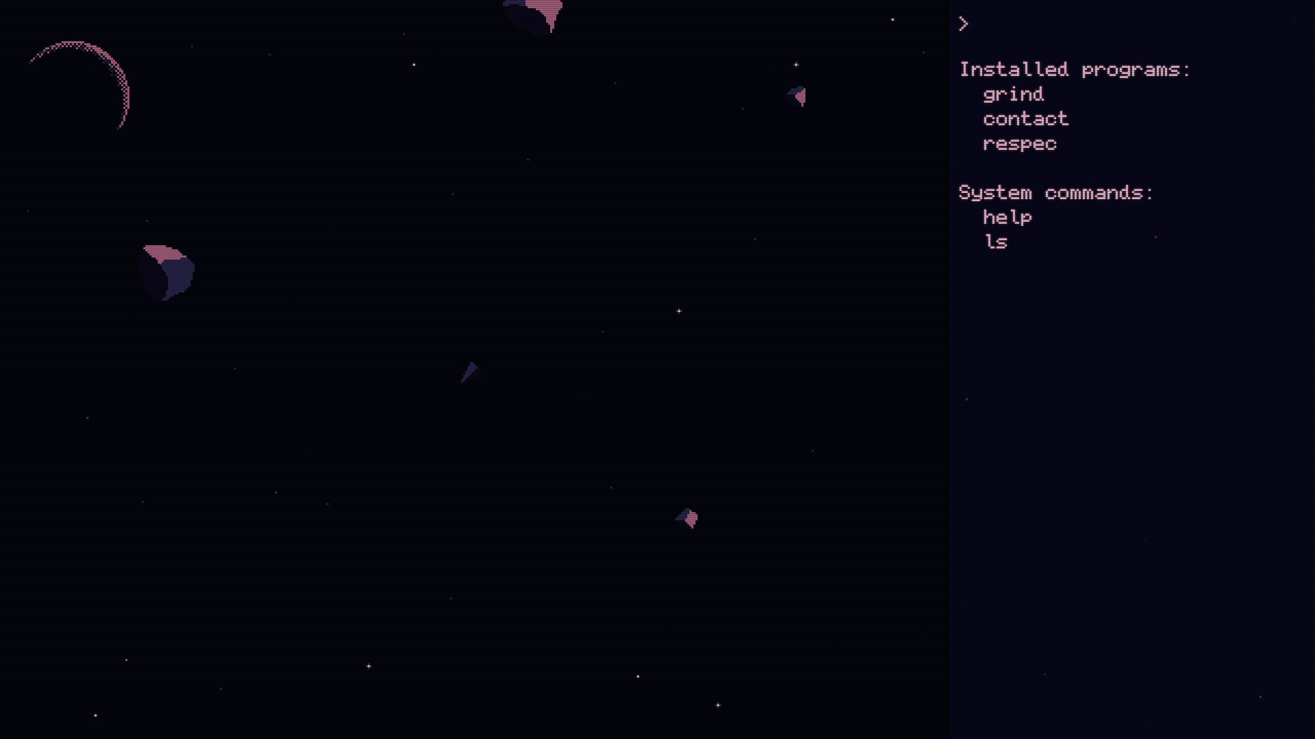 • In addition to flying around and shooting, you will communicate with the ship through a sleek terminal interface. You can buy more programs for the terminal at stations.