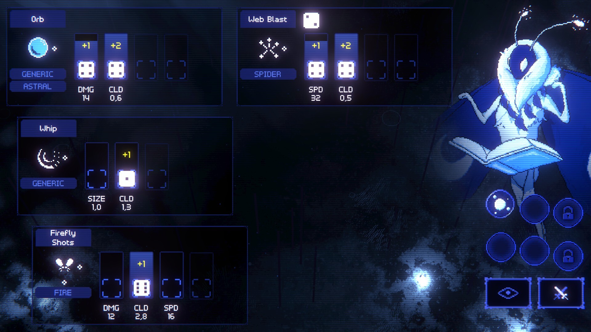 Your next decisions will decide your fate inside the arena. Slot your dice into spell-based parameters in order to maximise the synergy between your overall build and the relics you collected. Will you dump all your hopes and dreams into a singular, over-powered spell, or go wide and wear down your opponent with a well-rounded roster of attacks?