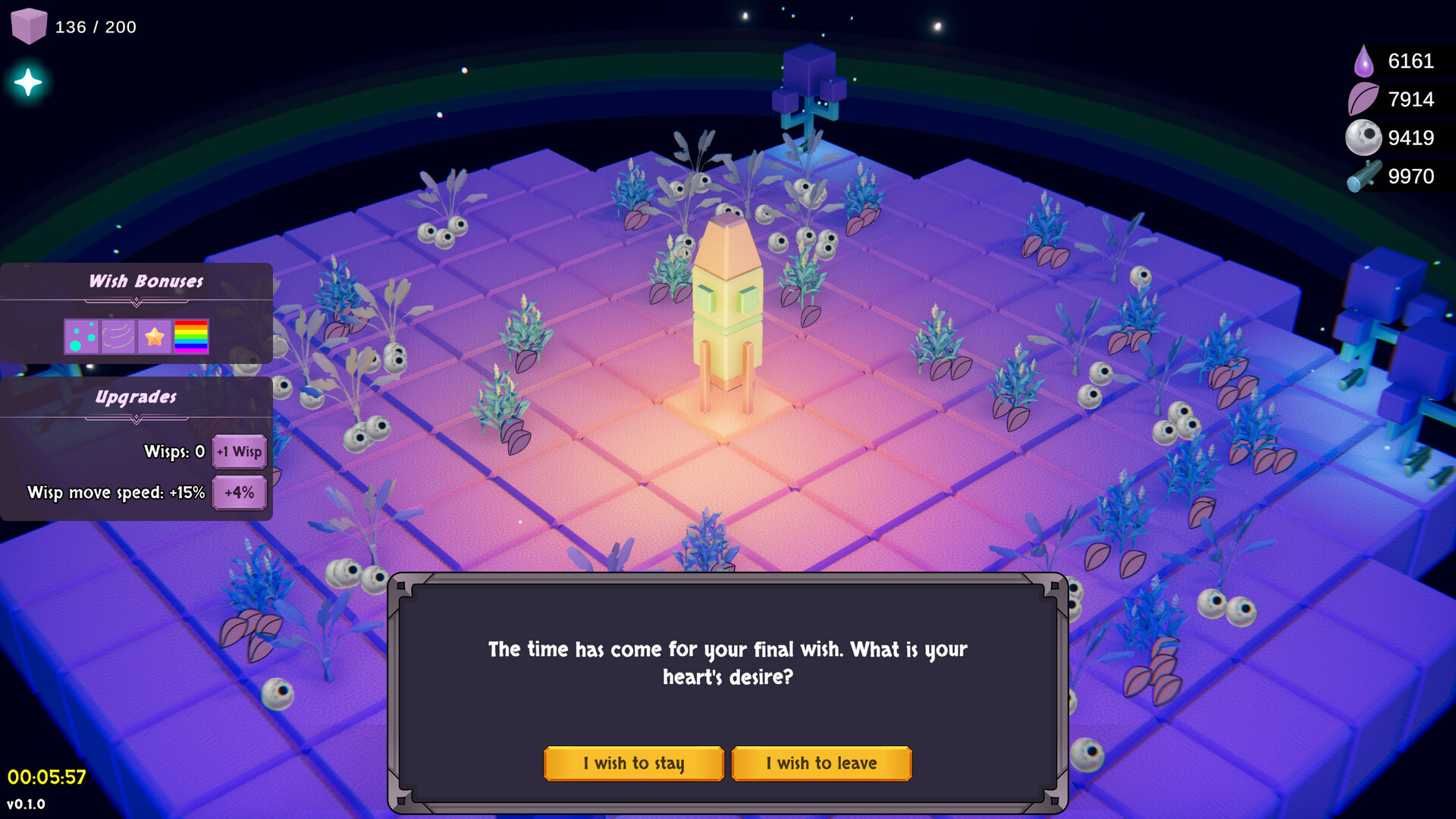 Grow a living alien world in this incremental base-builder. Cultivate strange plants, command loyal wisps, and reshape the sky with powerful wishes. Automate and expand your ecosystem as you uncover lost memories. As your sanctuary grows, will you stay... or leave in search of something more?