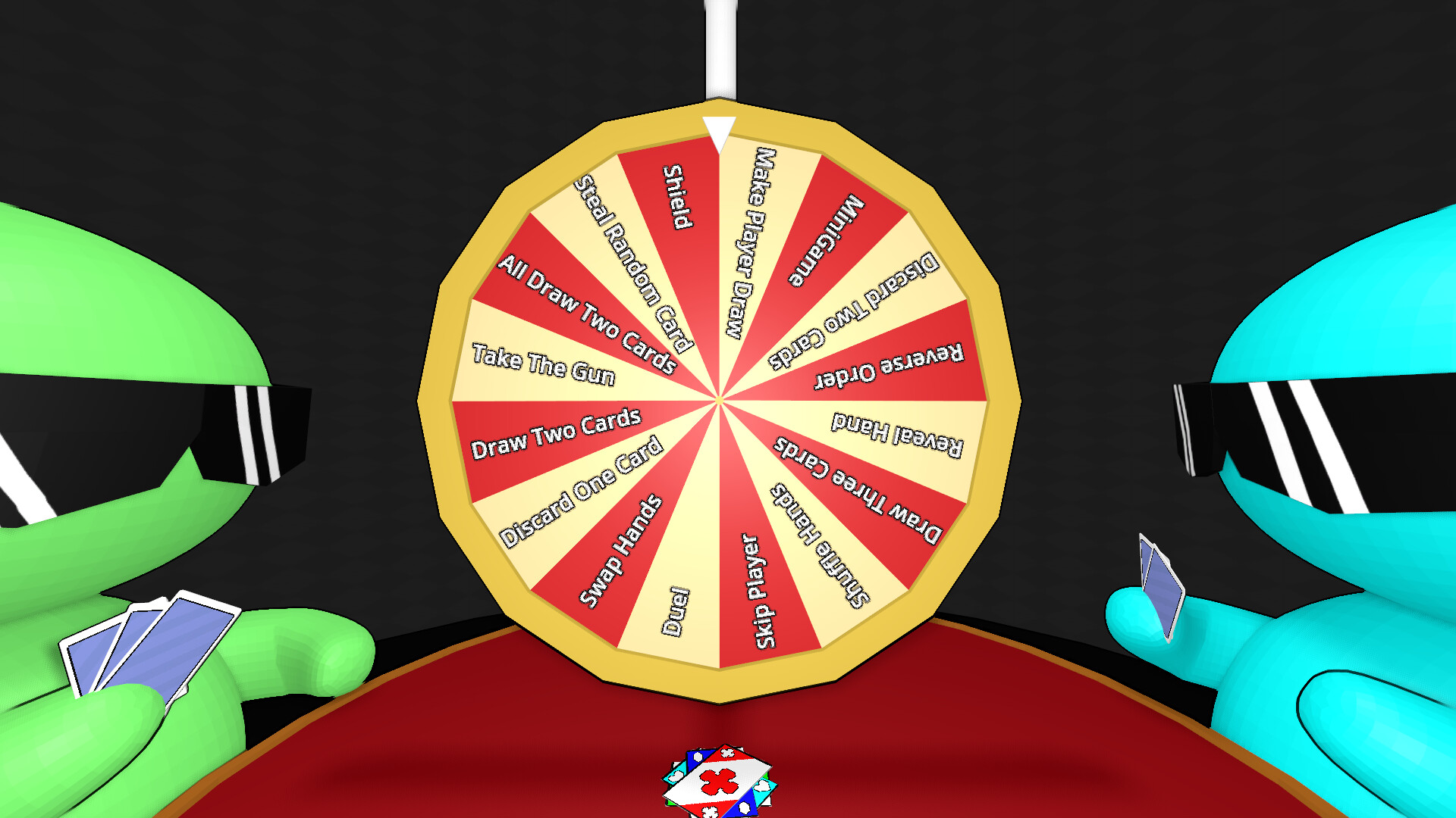 Play your cards, spin the wheel, and survive unpredictable events.