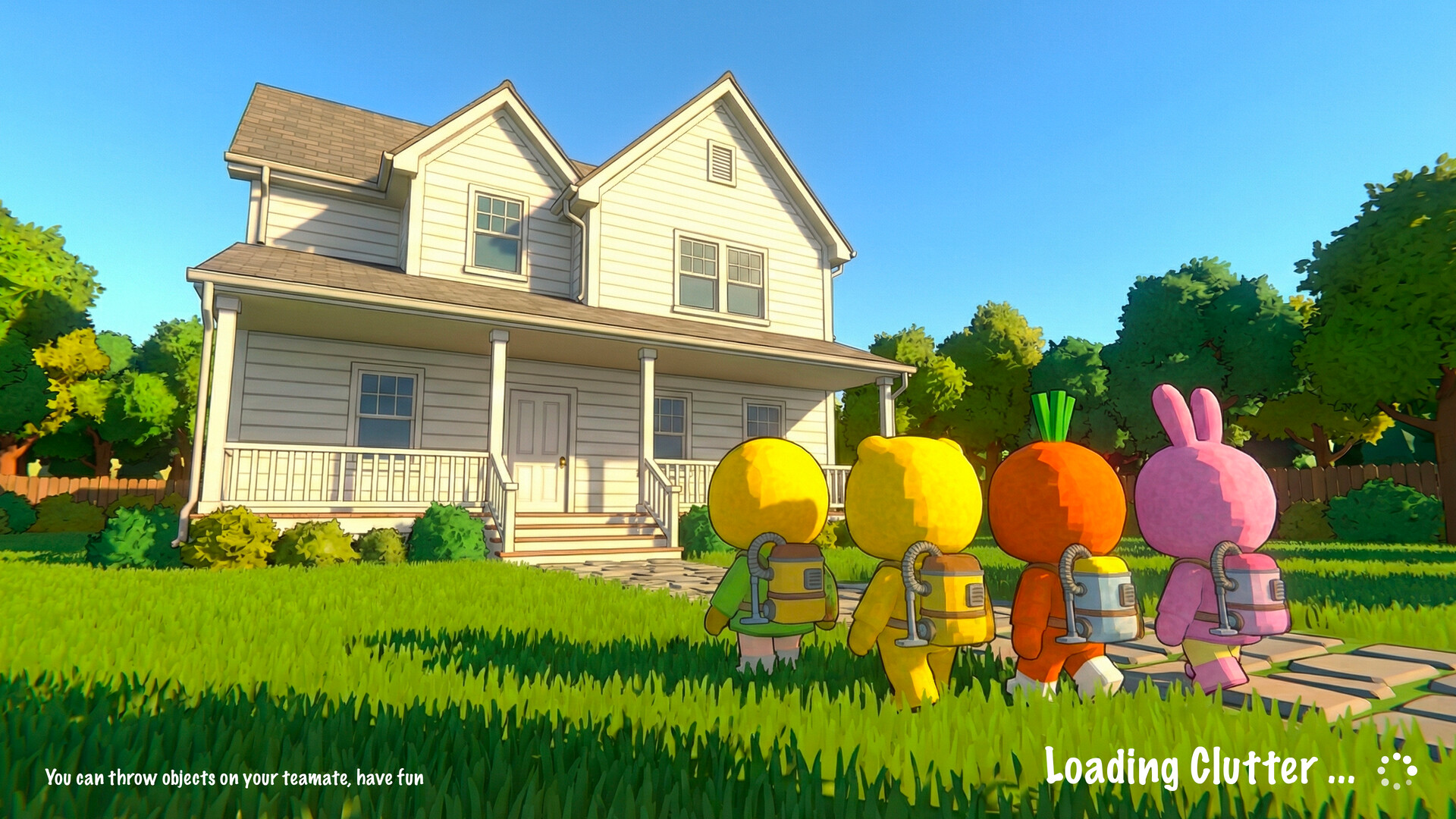 In this chaotic 4-player co-op experience, you and your team are sent into messy homes to declutter them as fast as possible. Use powerful vacuum gear to suck in furniture, trash, appliances — even each other — and throw everything into the dumpster outside before time runs out.