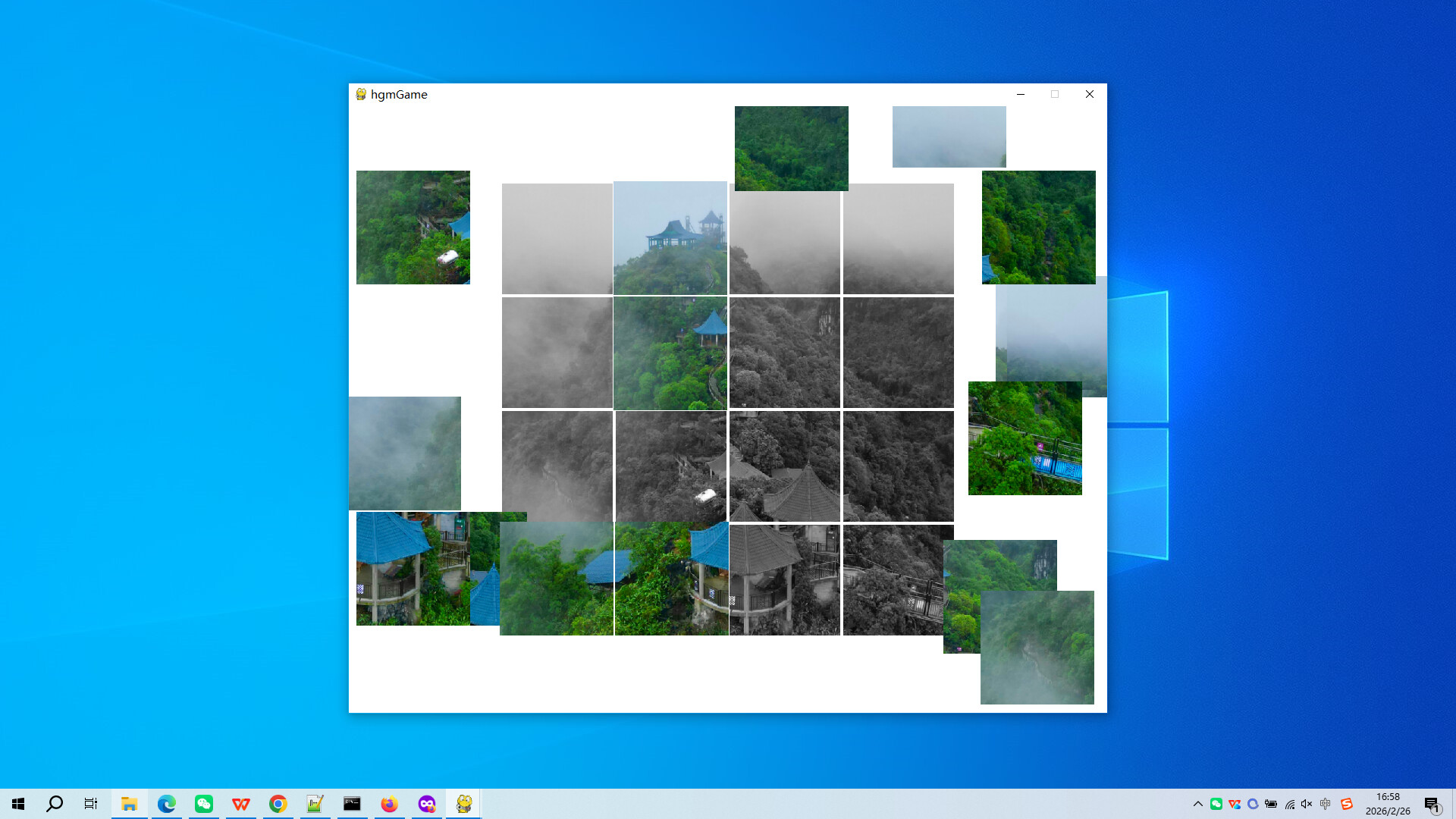Click on 'start game', the image will be grayed out, and the colored parts will be randomly scrambled into 16 small fragments, scattered randomly on the screen