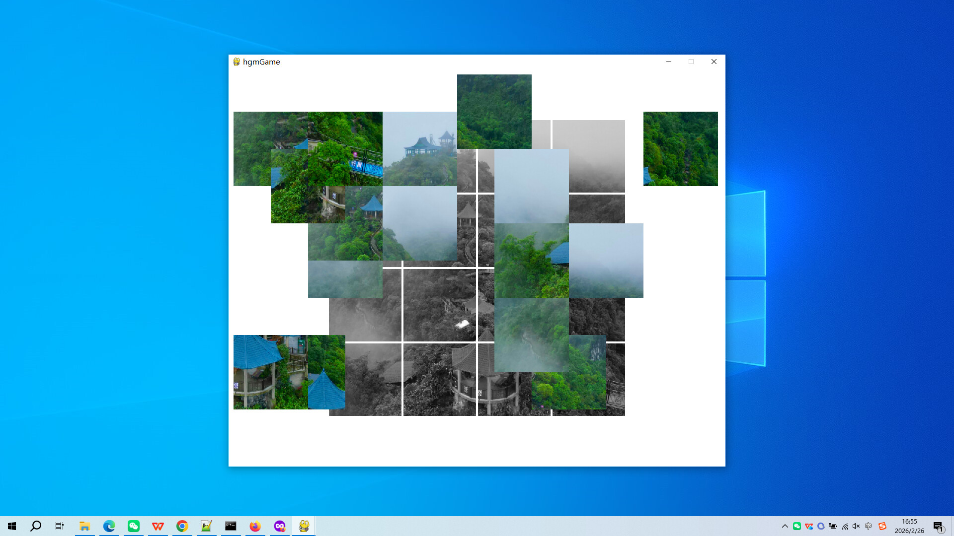 Click on 'start game', the image will be grayed out, and the colored parts will be randomly scrambled into 16 small fragments, scattered randomly on the screen