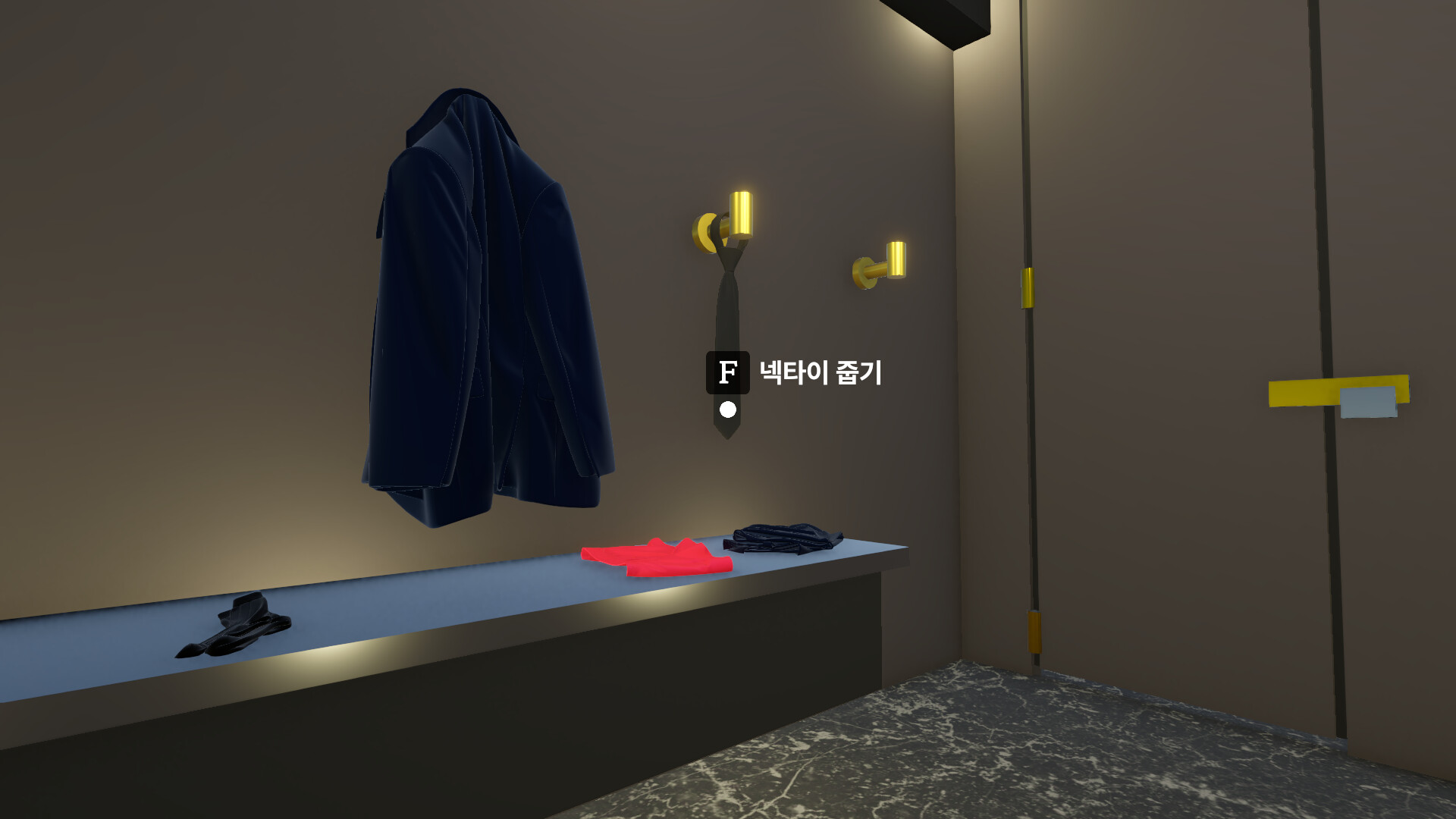 : Suit jacket, suit pants, socks, underwear, tie