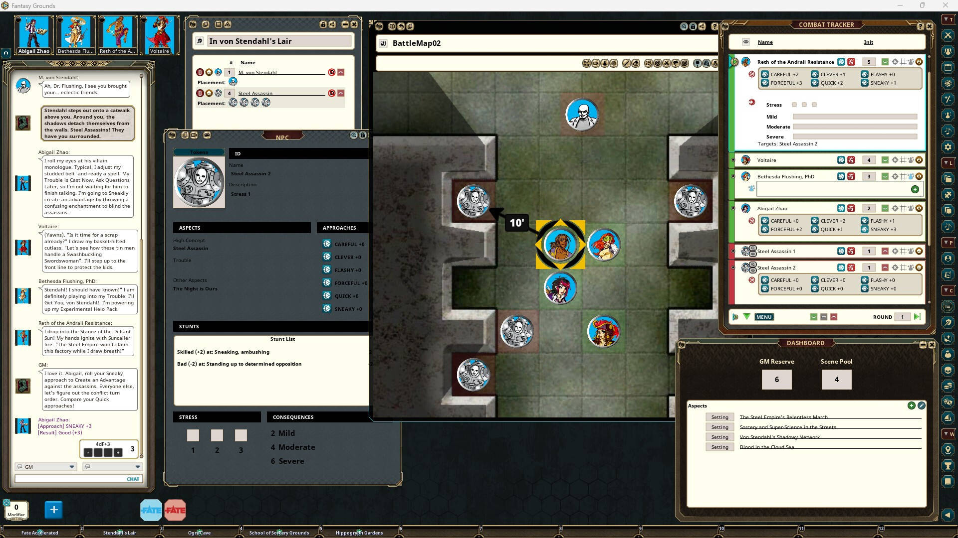 Requires: The free Fantasy Grounds virtual tabletop (VTT) software and a one time purchase of the FATE Core System ruleset.