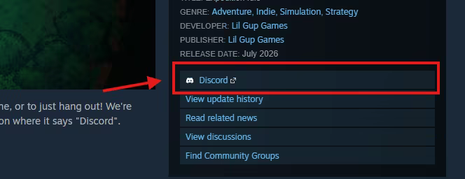 Join our Discord to give ideas or feedback, get teasers and regular updates to the game, or to just hang out! We're excited to hear from you! You can find the link on the bar to the right of this description where it says "Discord".