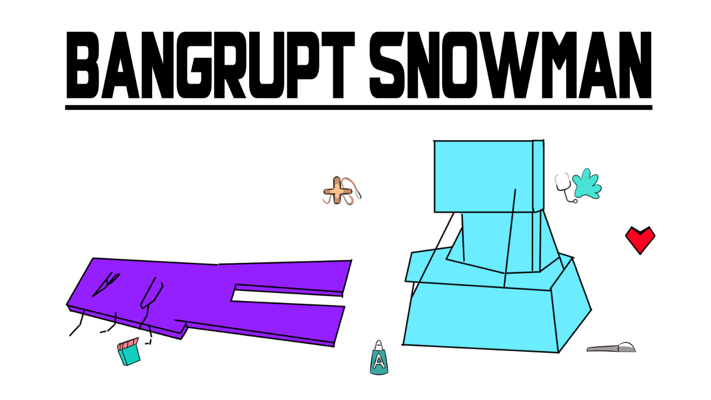 Bangrupt Snowman is about a snowman who is weak and worthless. One day, just before giving up, he borrows money from a bank and buys a small clinic to change his life and become a doctor.